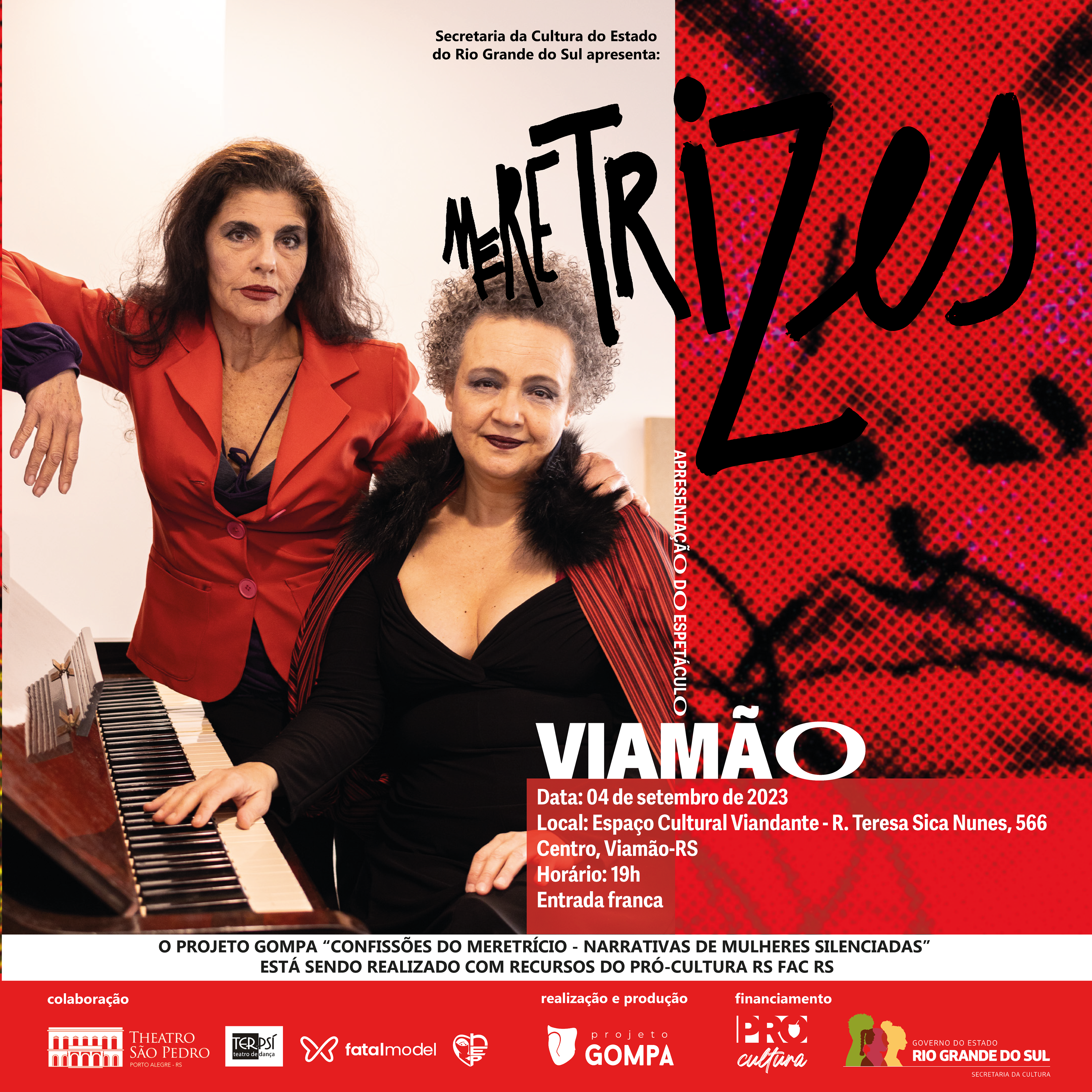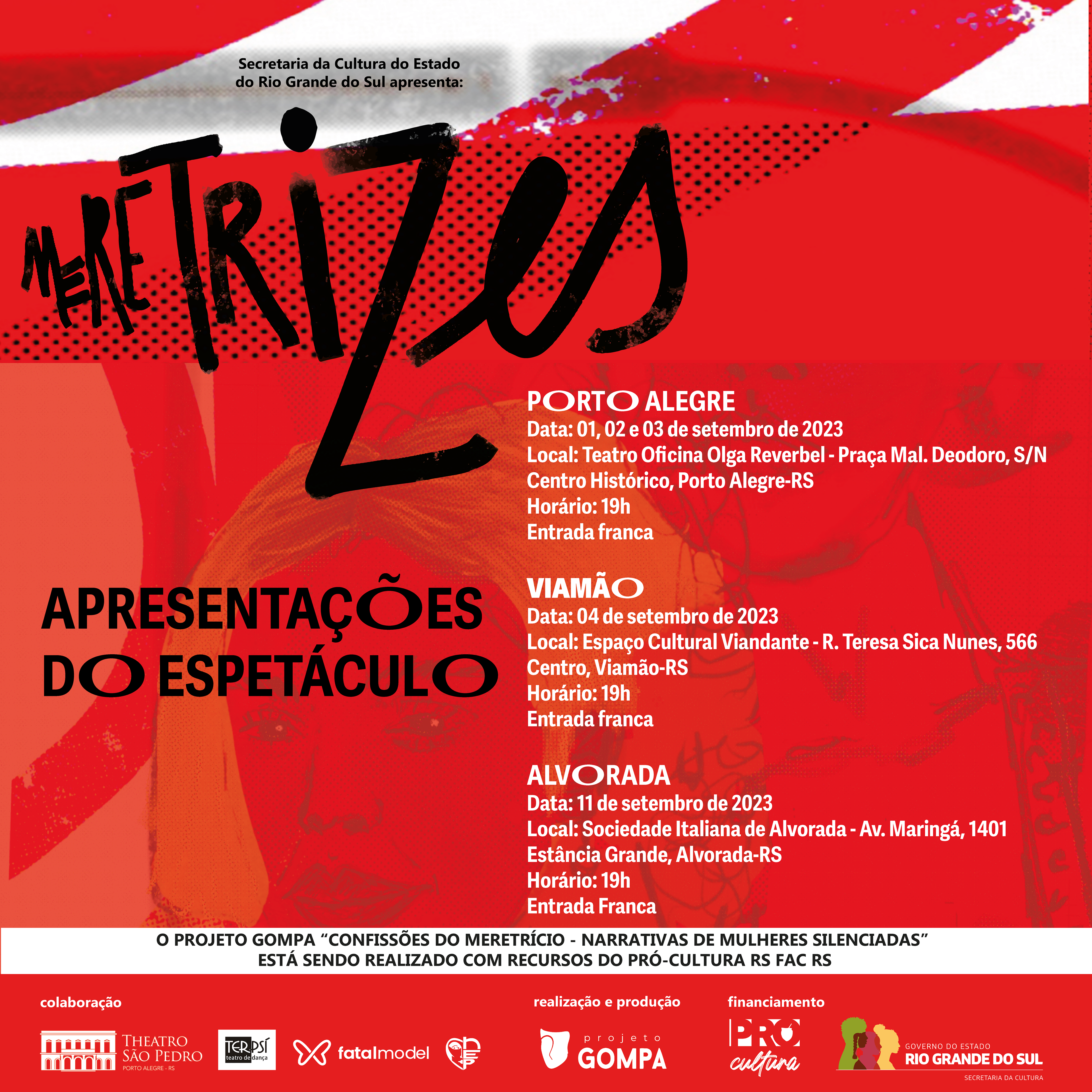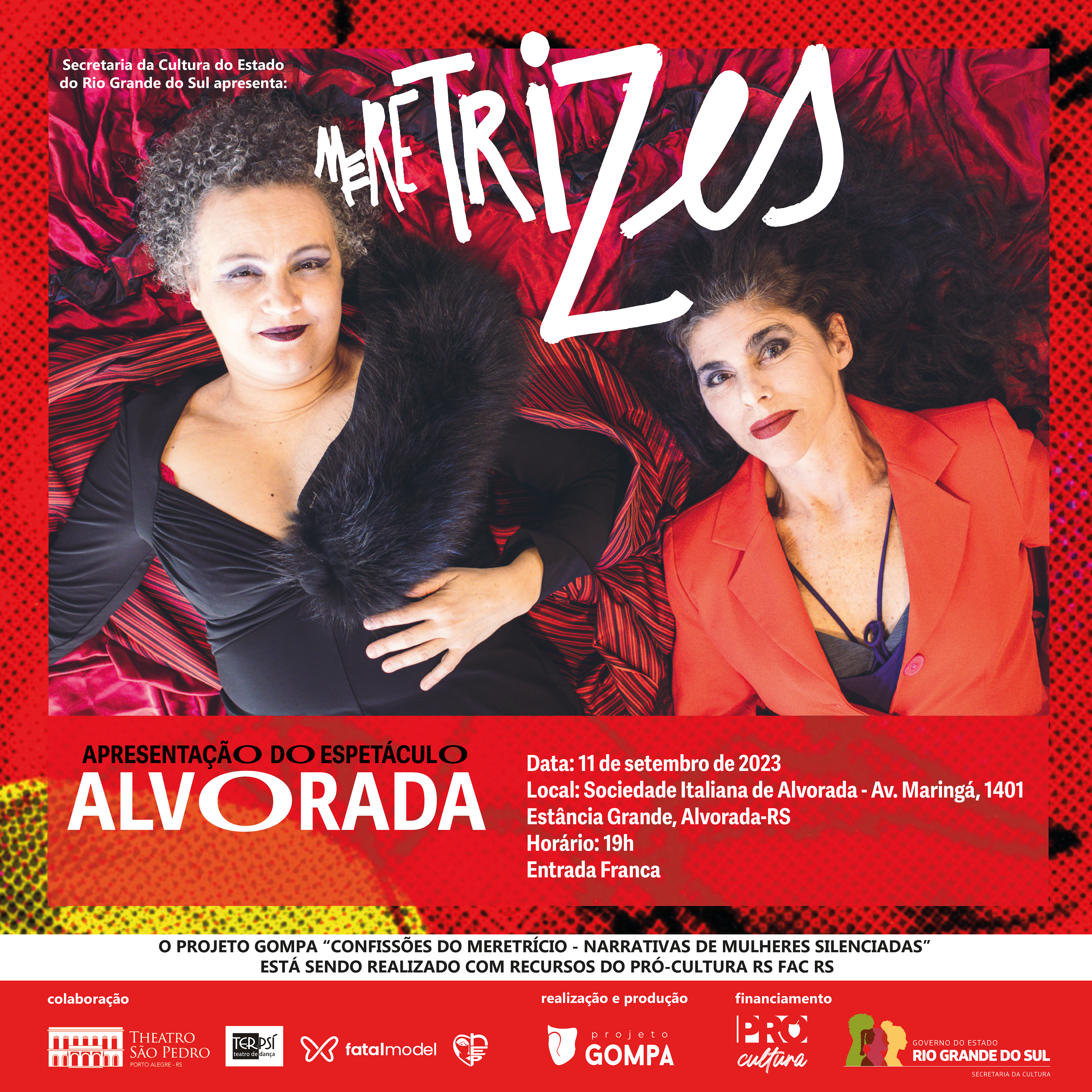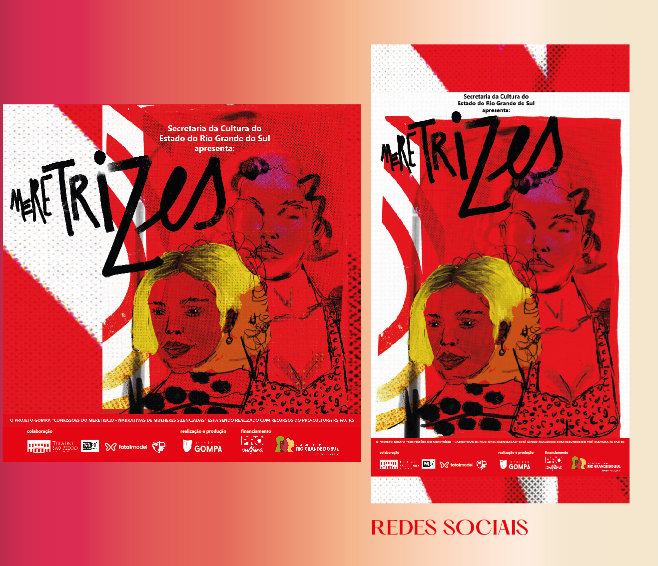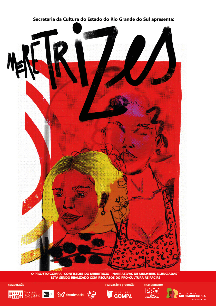 Identidade visual para a peça de teatro Meretrizes, que conta histórias reais de mulheres à margem da sociedade.